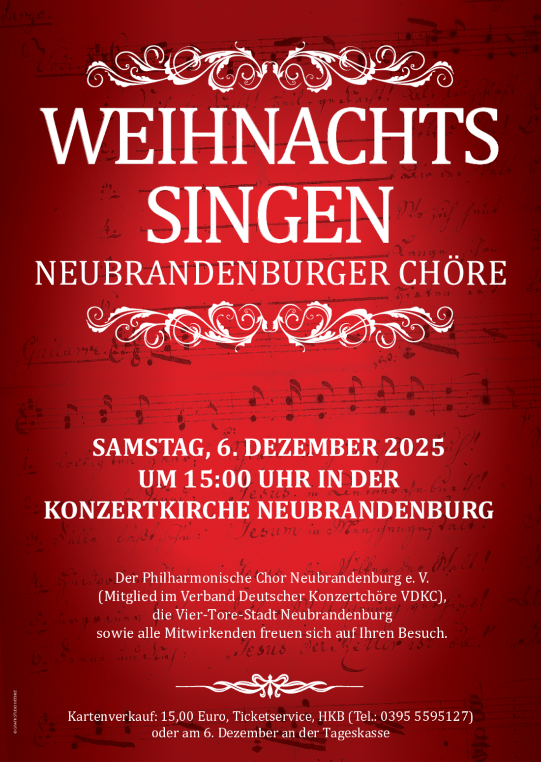Samstag, den 06.12.2025: Weihnachtssingen der Neubrandenburger Chöre in der Konzertkirche Neubrandenburg