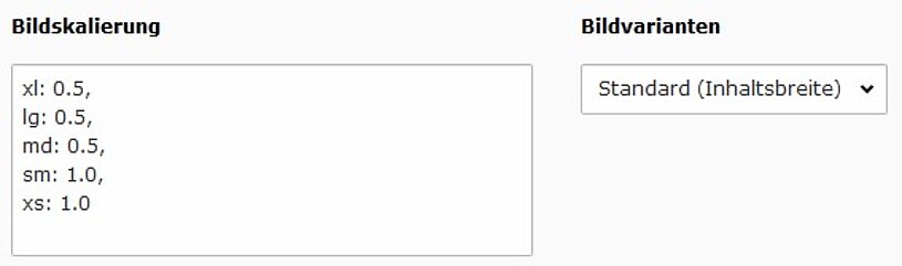 Einem Hintergrundbild können auch Bildvarianten zugewiesen werden. Dies wird haupsächlich bei der Verwendung eines Inhaltselementes in einem Strukturelement (z.B. Spalten) benötigt.