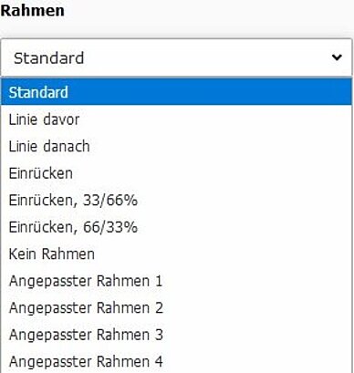 In der Registerkarte "Erscheinungsbild" können einem Inhaltselement verschiedene Rahmen zugewiesen werden.