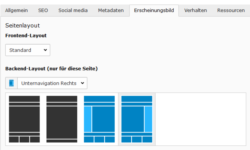 Das Bootstrap-Package bietet eine vielzahl von Seitenlayouts. Viele dieser Layouts unterscheiden sich hauptsächlich in der Spaltenaufteilung, welche bei dieser Distribution über Spalten-Strukturelemente vorgenommen werden kann. Zur besseren Übersicht wurden deshalb einige Layouts des Bootstrap-Packages deaktiviert.