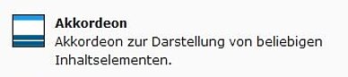 Das Bootstrap-Package stellt bereits ein Inhaltselement vom Typ Akkordeon zur Verfügung, in welchem vordefinierte Inhaltselemente aufgenommen werden können. Das Strukturelement "Akkordeon" ist in der Funktionsweise gleich, bietet jedoch die Möglichkeit, beliebige Inhaltselemente zu integrieren.